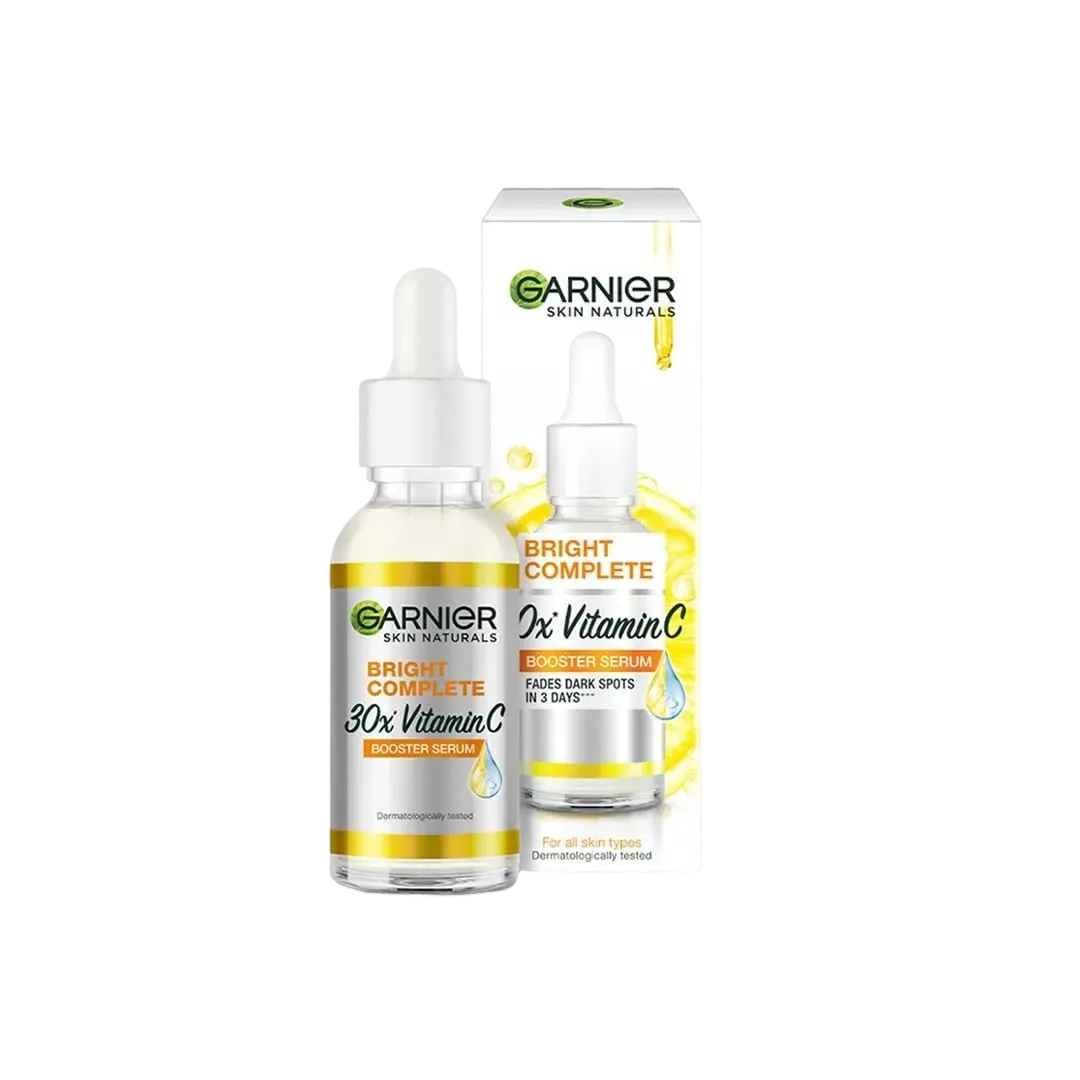 The Garnier Skin Naturals Bright Complete 30x Vitamin C Booster Serum is a dermatologically tested serum for all skin types. It is a highly concentrated formula with Vitamin C that is designed to help fade dark spots in as little as 3 days.